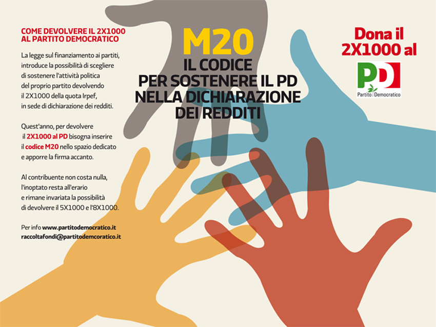 2×1000 AL PARTITO DEMOCRATICO CODICE M20 IN DICHIARAZIONE DEI REDDITI