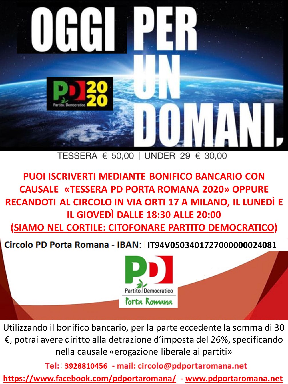 La rubrica ha l’ambizione di voler mantenere costantemente in contatto i cittadini del Municipio 1 con il nostro Circolo e più in generale con il Partito e la politica nel Municipio 1 di Milano.